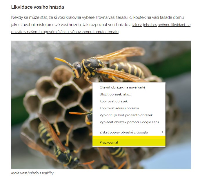 Nejjednodušší a nejpřesnější je se podívat na již vloženou fotku ve článku na daném webu nebo kouknutím na velikost (šířku) odstavce. Kliknu pravým tlačítkem myši na fotce a následně na prozkoumat.